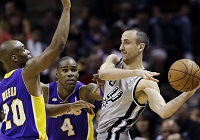 «لسآنجلس لیکرز» تیم هفتم کنفرانس غرب برای دومین بار به مصاف «سنآنتونیو» رفت و برای دومین بار مغلوب شد. در این دیدار که "تونی پارکر" گارد راس فرانسوی «سنآنتونیو» با کسب 28 امتیاز، 4 ریباند و 7 پاس منجر به گل بهترین بازیکن میدان بود تیمش 102 بر 91 به پیروزی رسید.