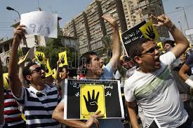 حامیان مرسی در تظاهرات خود از نماد چهار انگشت استفاده می کنند که اشاره ای به نام میدان "رابعه العدویه" قاهره است. این میدان محل اصلی تحصن و تجمع حامیان مرسی بود که در حمله ارتش و نیروهای امنیتی مصر و کشته شدن صدها نفر یایان یافت.