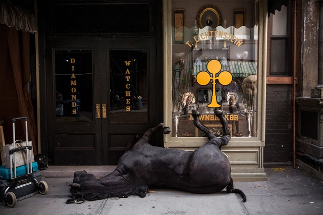 ماکت اسب مرده برای استفاده در یک نمایش تلویزیونی در نیویورک