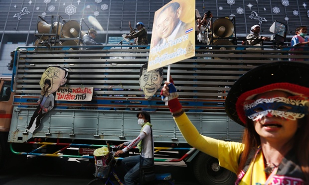 یک راهب تایلندی در میان معترضان دولت در بانکوک