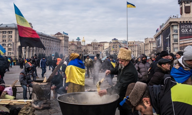 پخت سوپ برای معترضان ضد دولتی در میدان استقلال شهر کی یف اوکراین