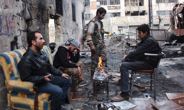 شورشیان مسلح سوریه در منطقه ای در حومه شهر حلب در حال گرم شدن