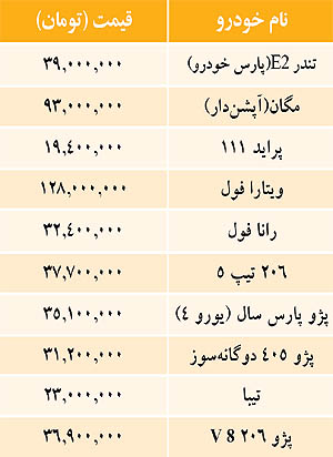 قیمت خودروهای داخلی در بازار (جدول)