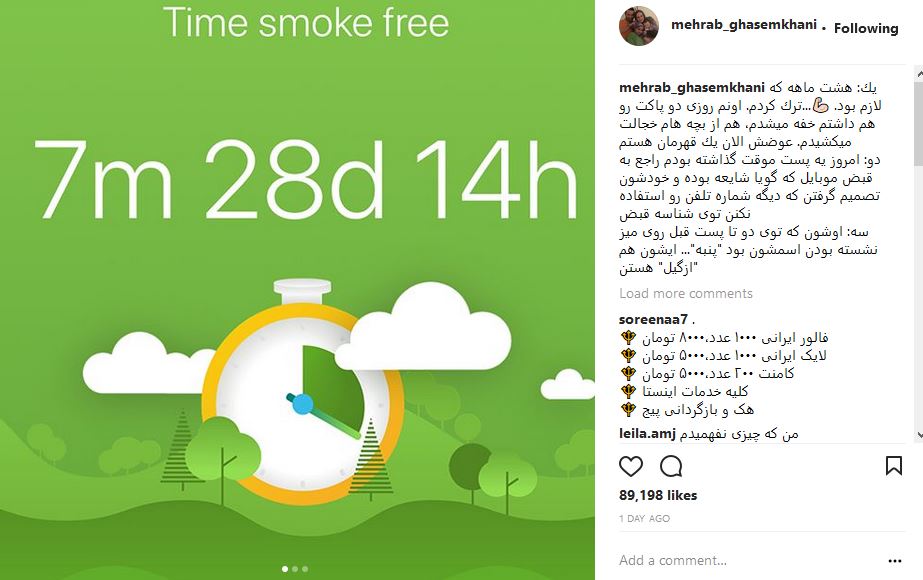 مهراب قاسم خانی با انتشار این تصویر در اینستاگرامش نوشت:
