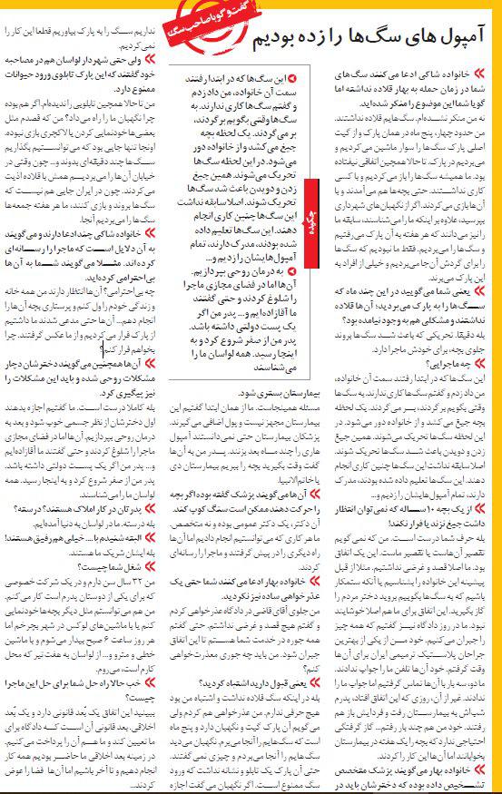 * یعنی شما میگویيد در این چند ماه که سگها را به پارک میبردید؛ آنها قلاده نداشتند و مشکلی هم به وجود نیامده بود؟