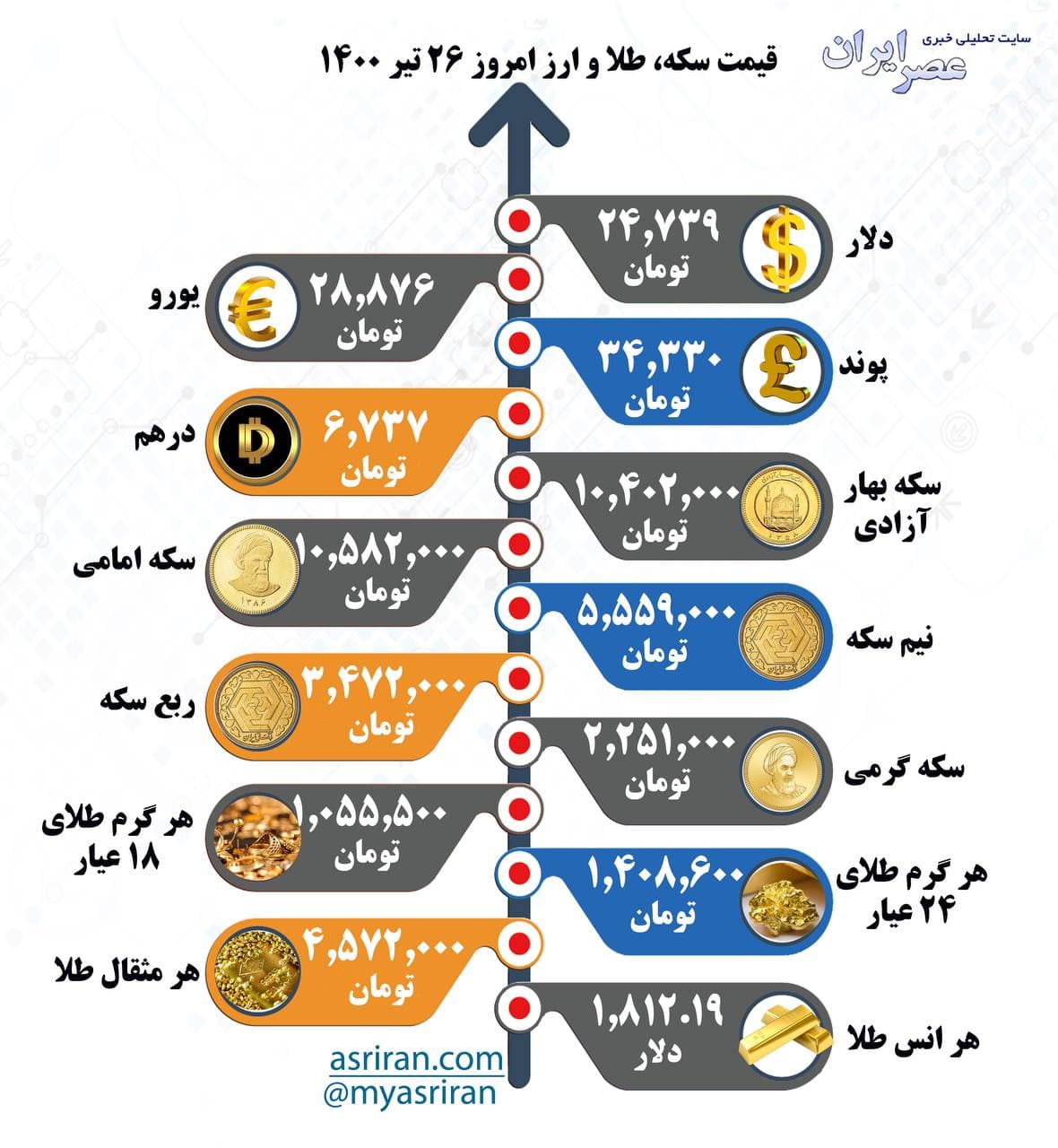 قیمت سکه، طلا و ارز، شنبه ۲۶ تیر (اینفوگرافیک)