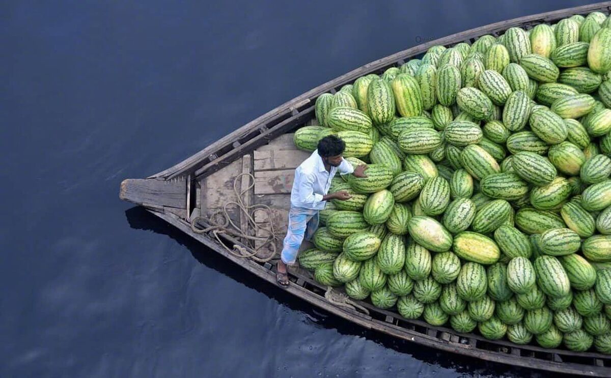 بار هندوانه به وسیله قایق به بازار‌های تابستانی هندوانه در بنگلادش منتقل و به دست خرده فروشه‌ها و در نهایت مشتری می‌رسد.